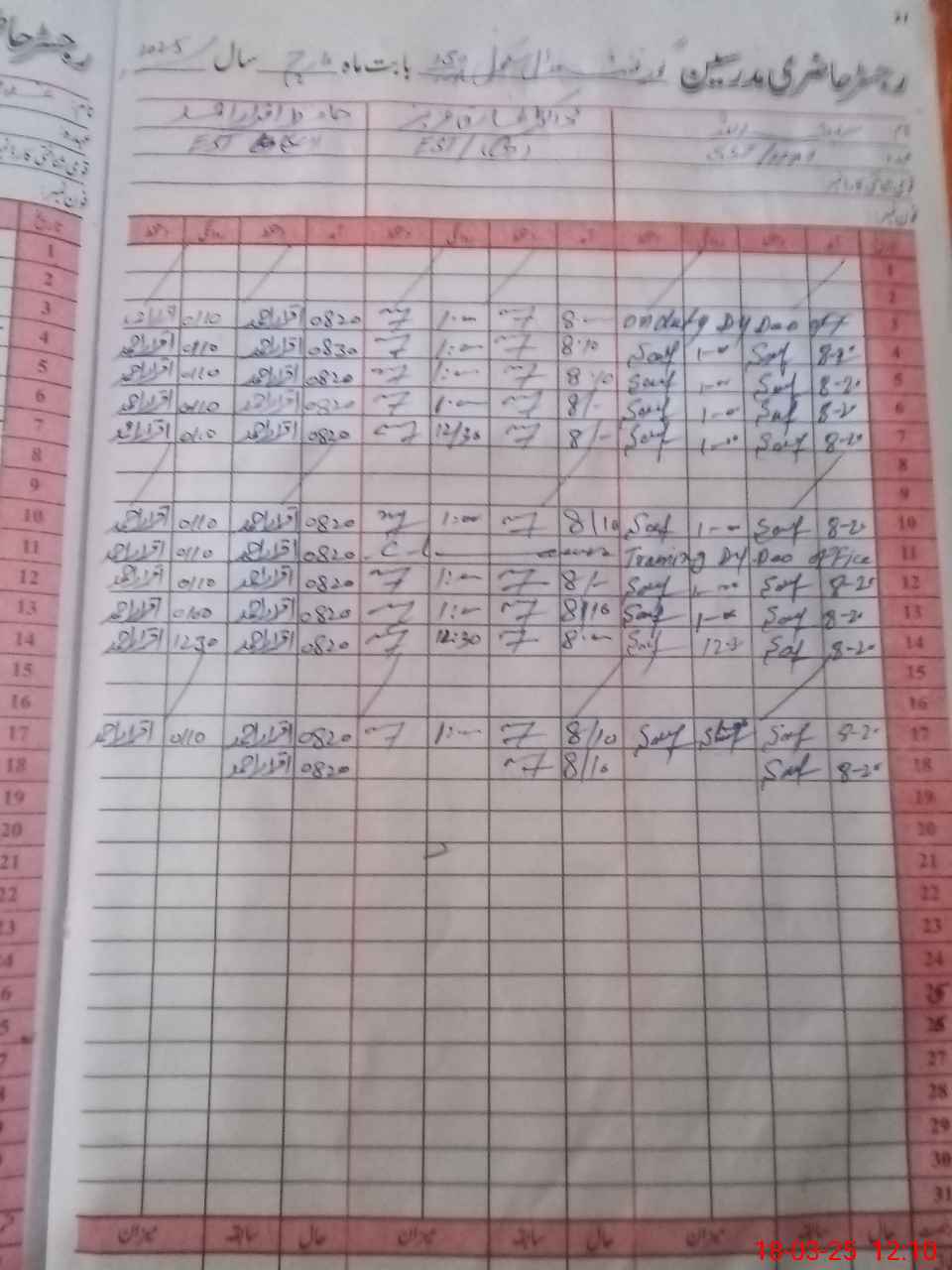 | 36**** | Ra**** Mu**** Ar**** | PST | Regular | 0 | 0 | 0 | 0 | 0 | 0 | 0 | 0 | 0 | Exam Duty |