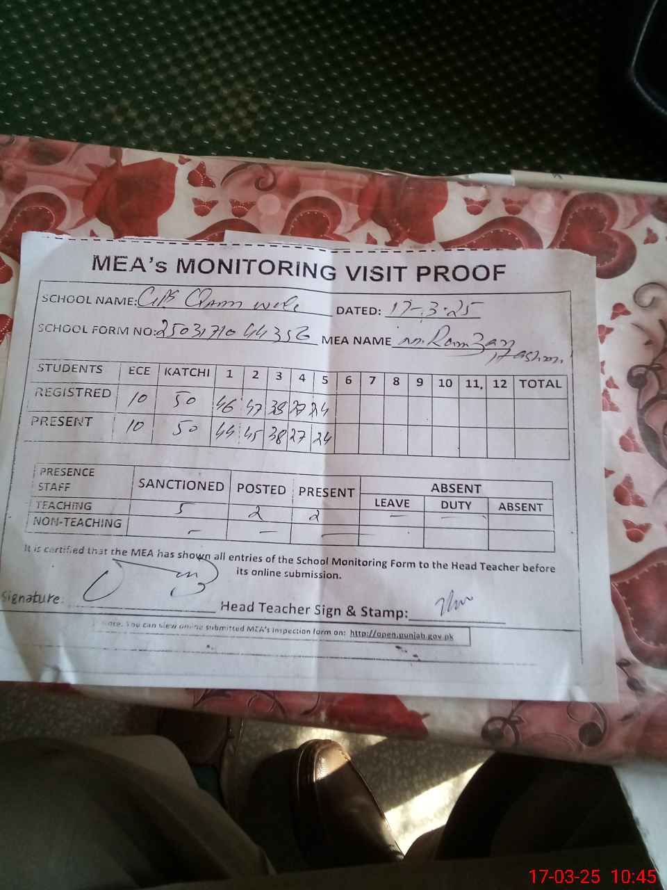 | Certified that this School was Inspected by the Undersigned MEA/DMO Today and the Information Stated Above is as Per Record. | |||||