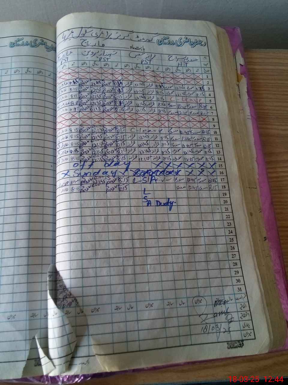 | 32**** | Im**** Ja**** | PST | Regular | 1 | 0 | 0 | 0 | 0 | 0 | 0 | 0 | 1 | Exam Duty |