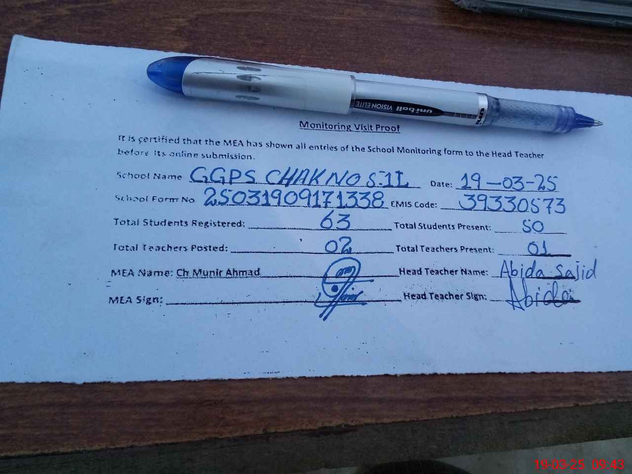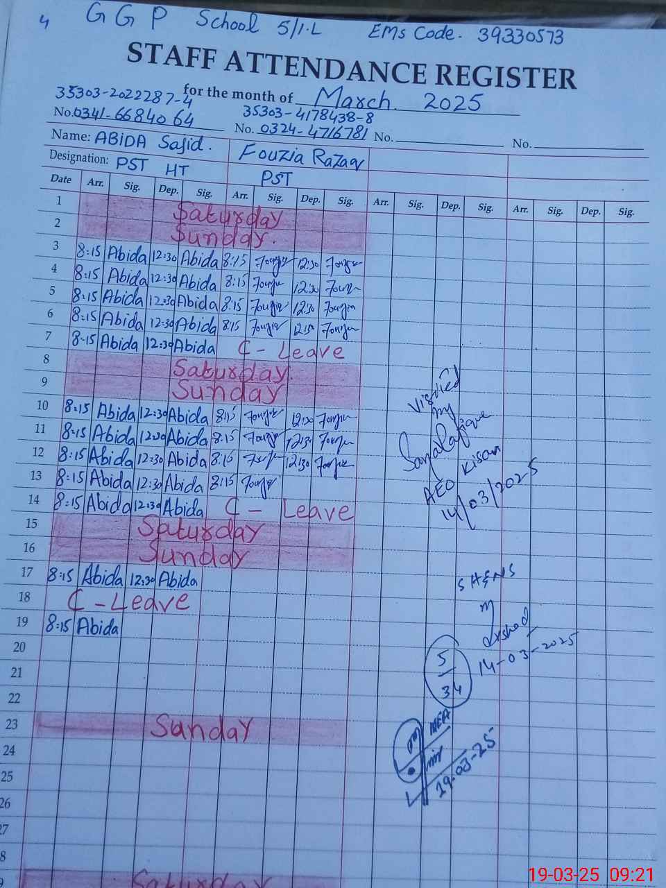 | Name: Ab**** Sa**** Designation: (School Headmaster's/Headmistress's) PST Phone/Cell Number: 03**** |