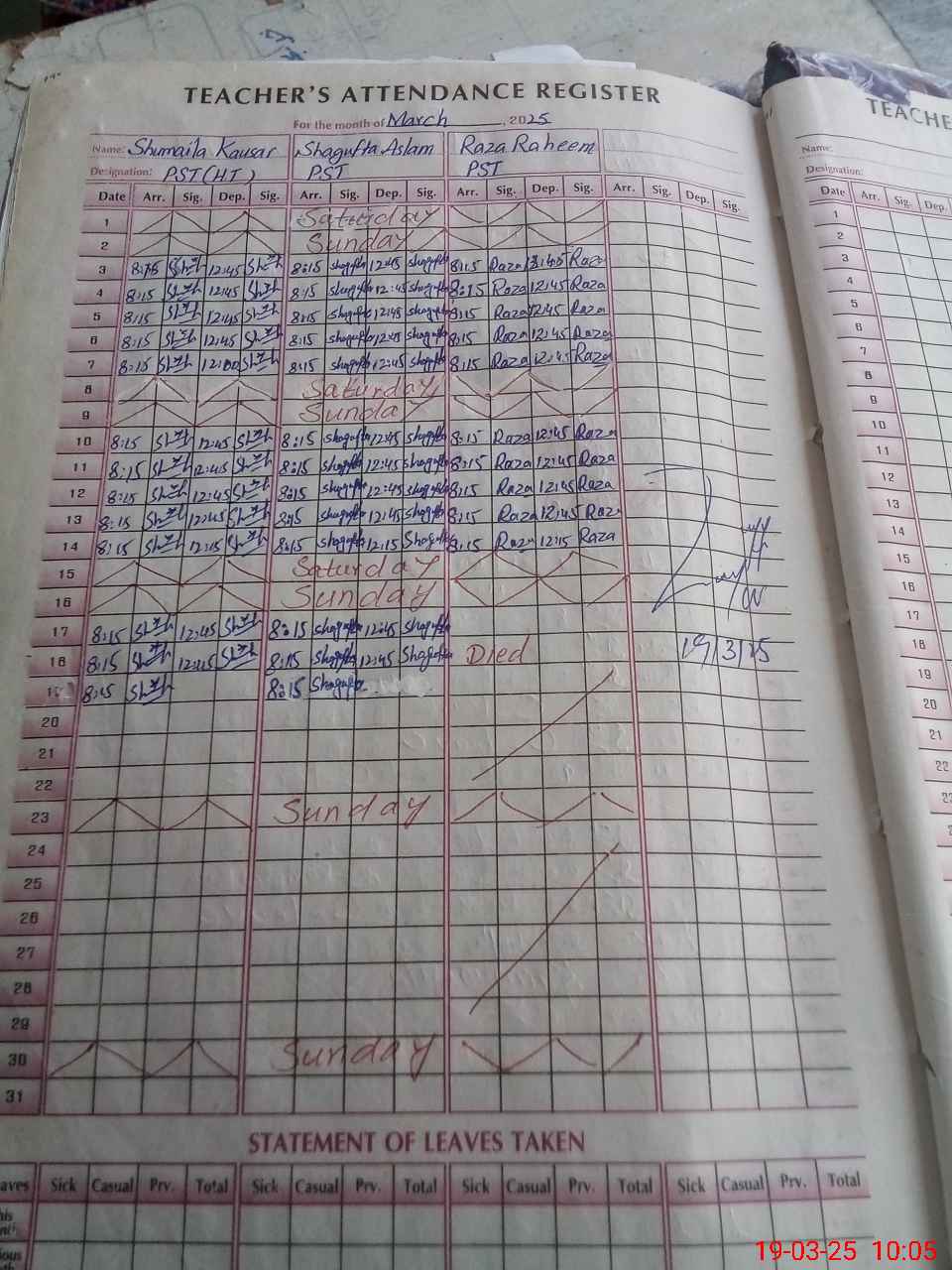 | Leave | Duty | Absent | Maternity | Medical | Ex- Pak |