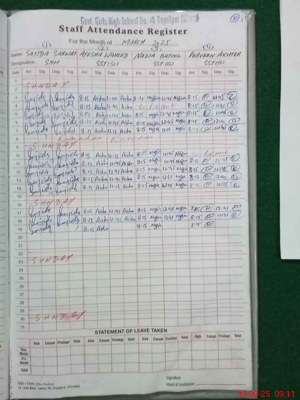 | Leave | Duty | Absent | Maternity | Medical | Ex- Pak |