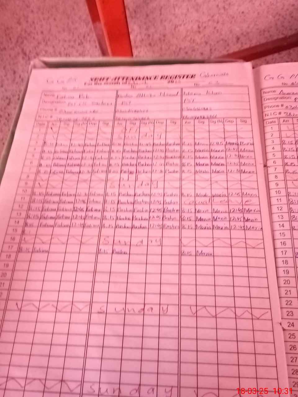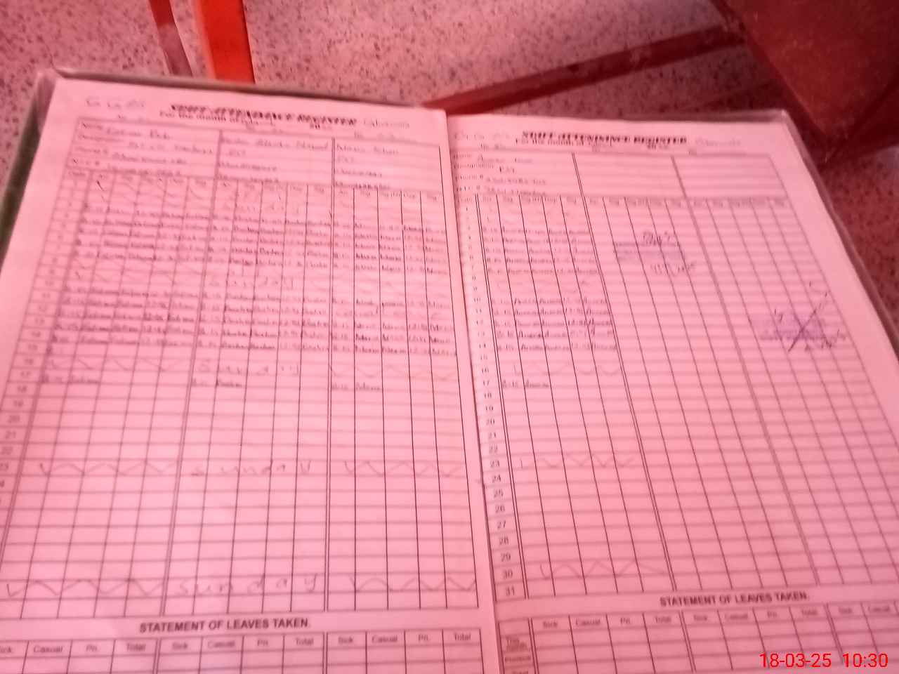 | CNIC | Full Name | Designation | R/C | Absence During Last Calender Month |