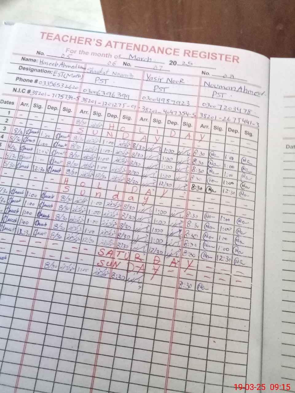 | Name: Mu**** As**** Designation: (School Headmaster's/Headmistress's) SST General Phone/Cell Number: 03**** |