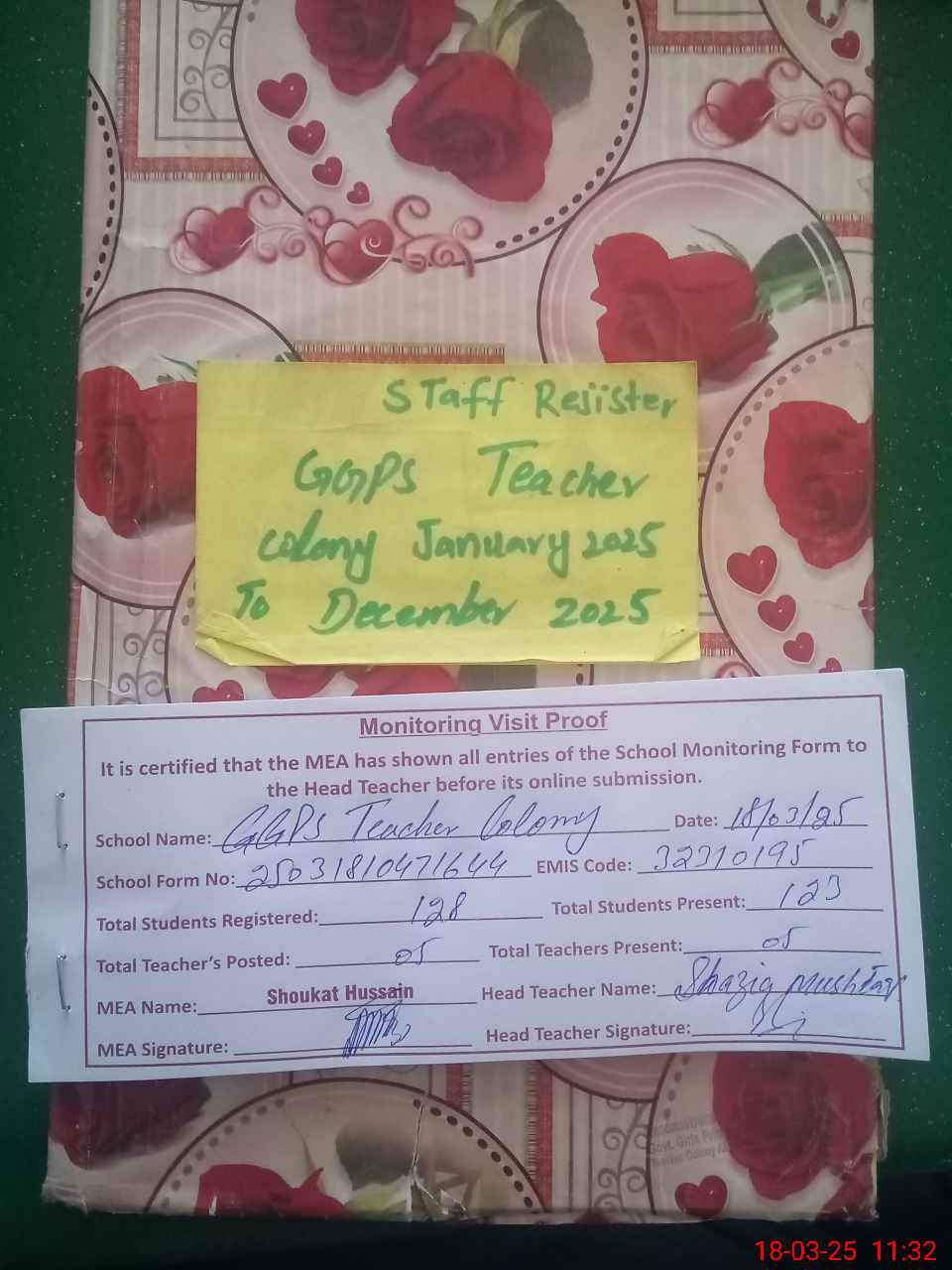 | EMIS Code: 32310195 | Name of School: GGPS TEACHER COLONY | |||