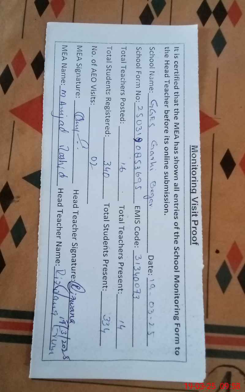 | EMIS Code: 31340073 | Name of School: GGES GHARI BEGHAR | |||