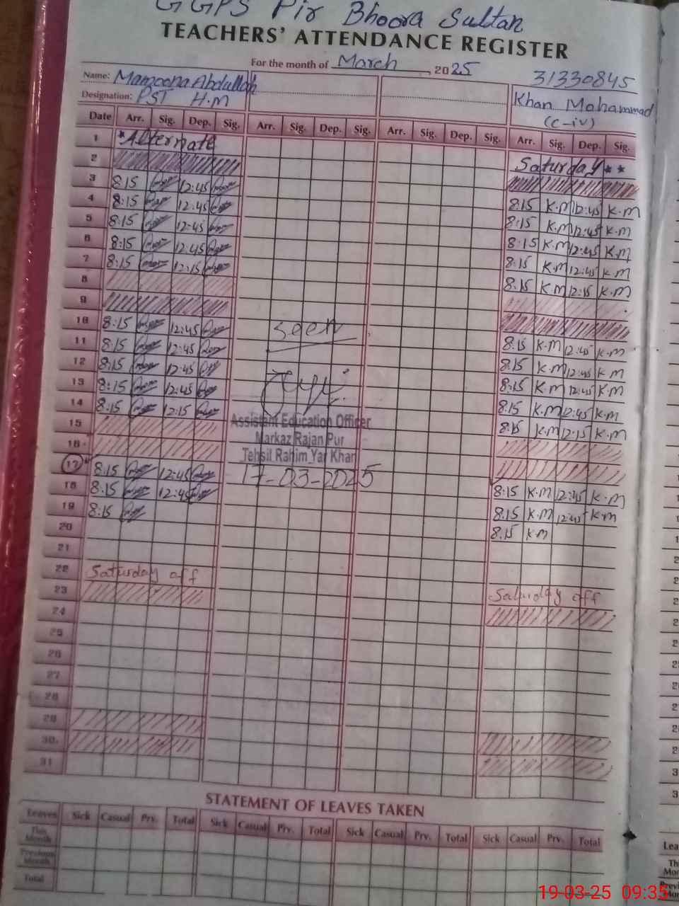 | EMIS Code: 31330845 | Name of School: GGPS PIR BHOORA SULTAN | |||
