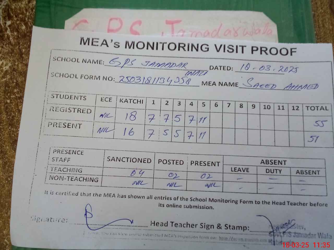 | EMIS Code: 36410653 | Name of School: GPS JAMADAR WALA | |||