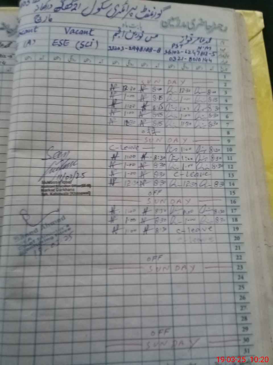 | Name: MU**** AA**** NA**** Designation: (School Headmaster's/Headmistress's) ESE (SC+MATH ) Phone/Cell Number: 03**** |