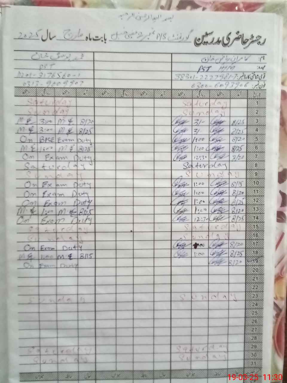 | 11**** | Mu**** Yo**** Kh**** | PST | Regular | 0 | 0 | 0 | 0 | 0 | 0 | 0 | 0 | 0 | Exam Duty |