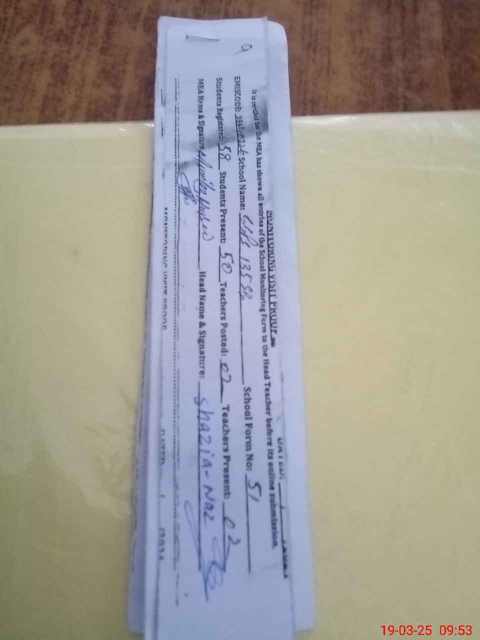 | Attendance Register | Head Teacher | MEA with School | Visit Proof |
