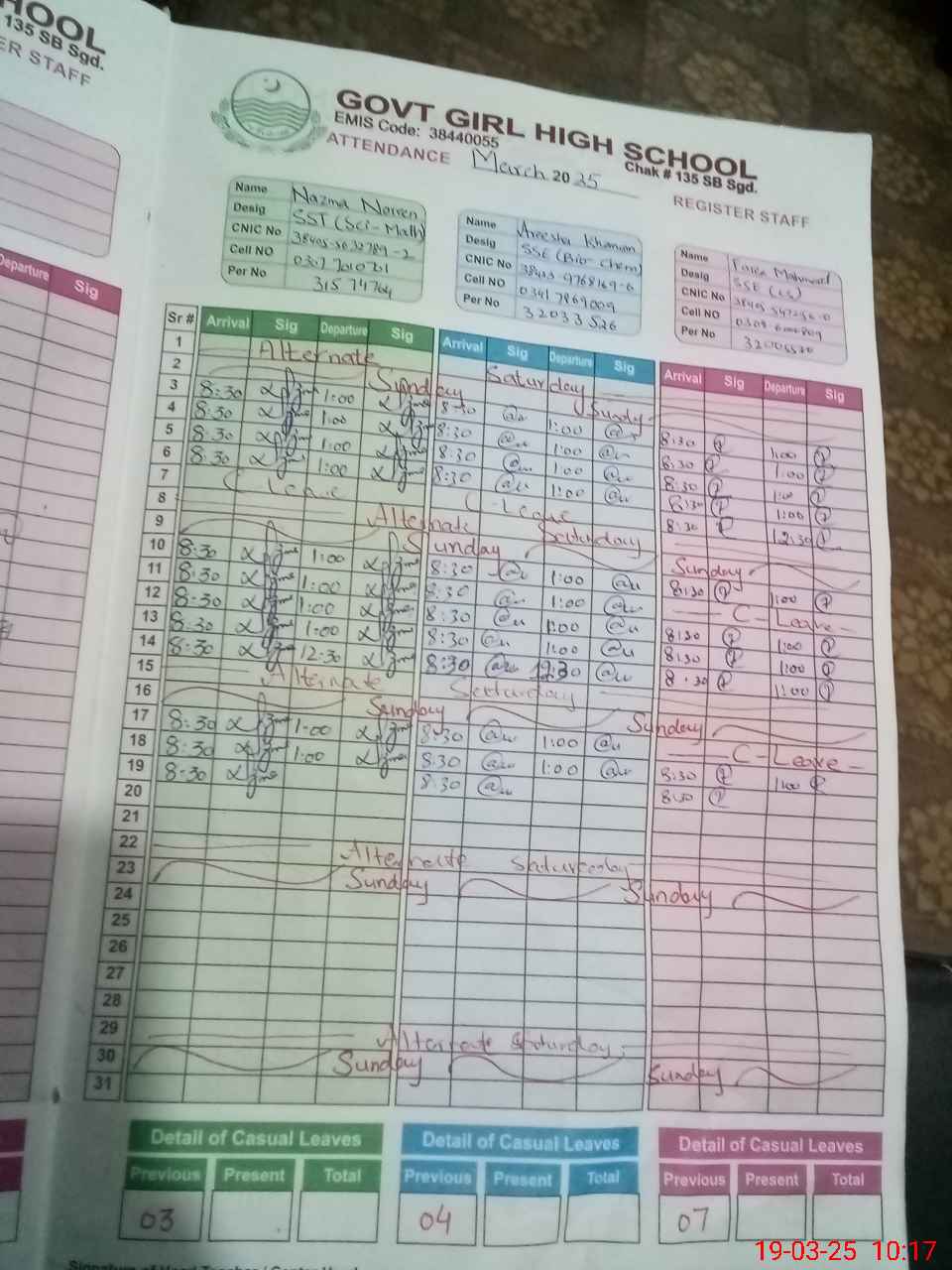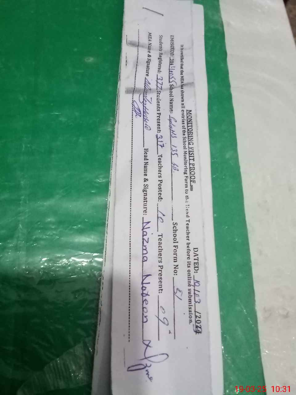 | EMIS Code: 38440055 | Name of School: GGHS CHAK 135/SB | |||