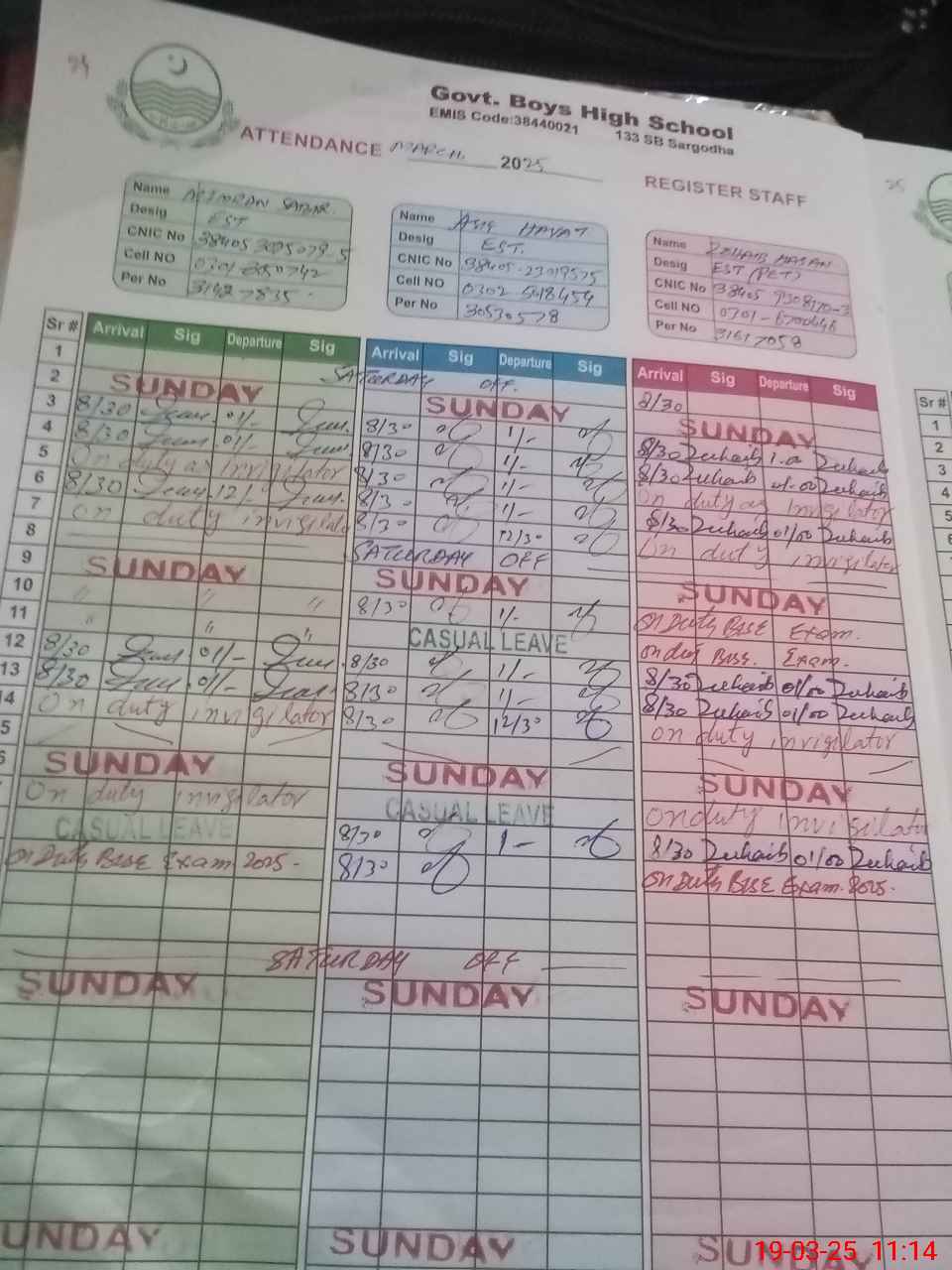 | 38**** | Zo**** Ha**** | Regular | 0 | 0 | 0 | 0 | 0 | 0 | 0 | 0 | 0 | Exam Duty | |