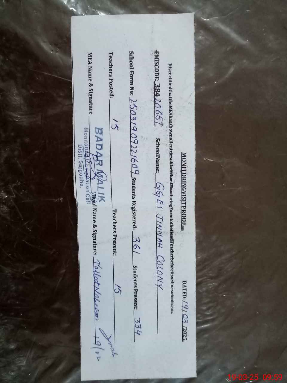| EMIS Code: 38420657 | Name of School: GGES JINNAH COLONY | |||