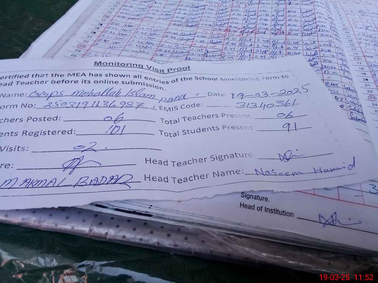| EMIS Code: 31340361 | Name of School: GGPS MOHALLA ISLAM PURA | |||