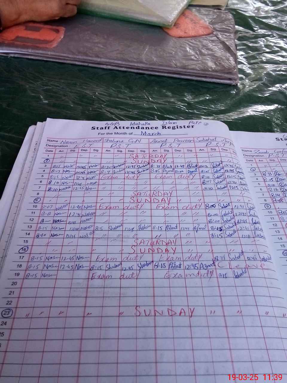 | 31**** | Az**** Pa**** | PST | Regular | 0 | 0 | 0 | 0 | 0 | 0 | 0 | 0 | 0 | Exam Duty |