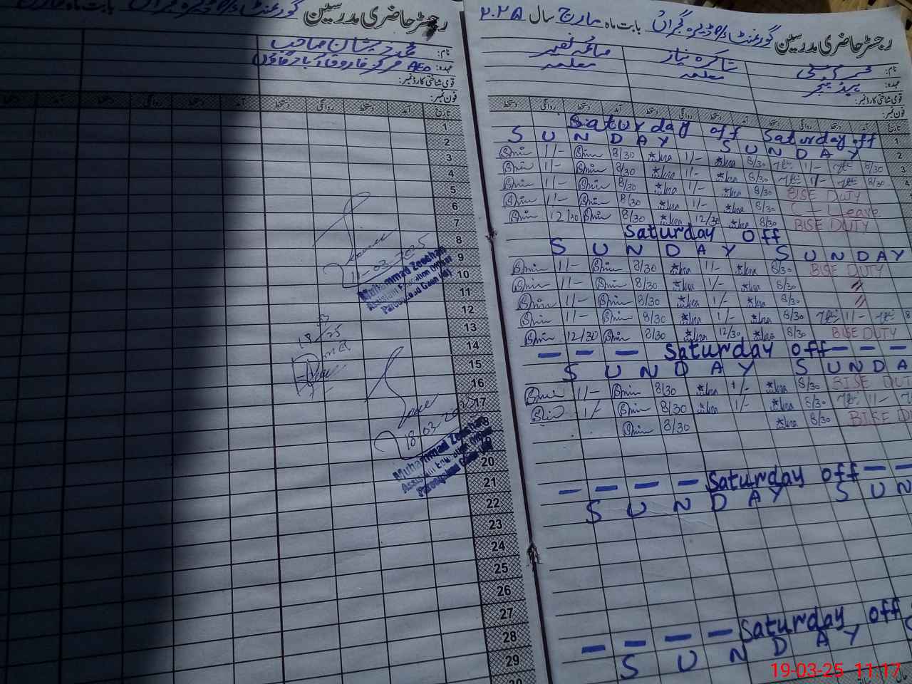 | 35**** | Mu**** Al**** | PST | Regular | 0 | 0 | 0 | 0 | 0 | 0 | 0 | 0 | 0 | Exam Duty |