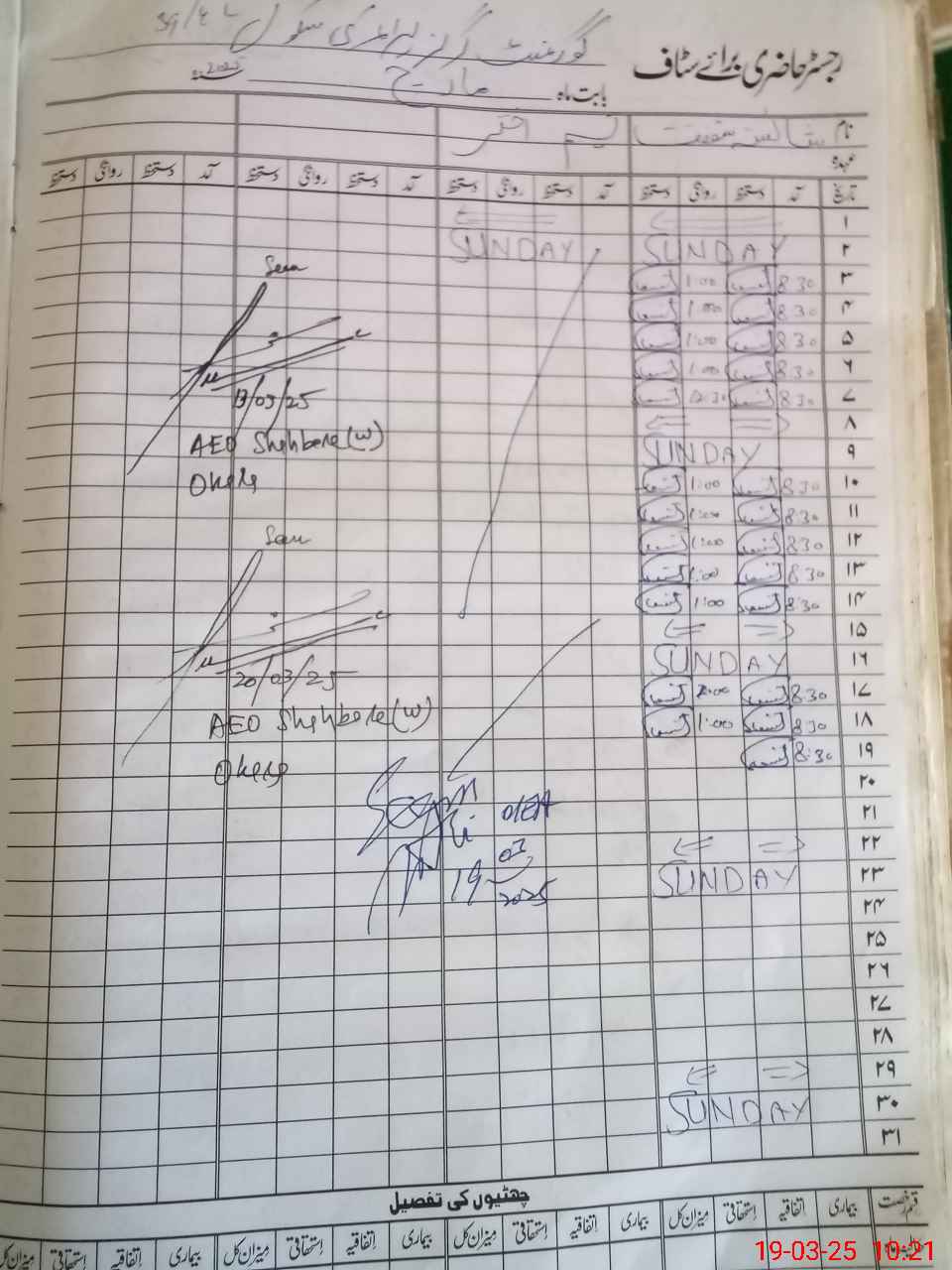 | District: OKARA | Tehsil: OKARA | Markaz: SHAHBORE - FEMALE | Level: Primary | |