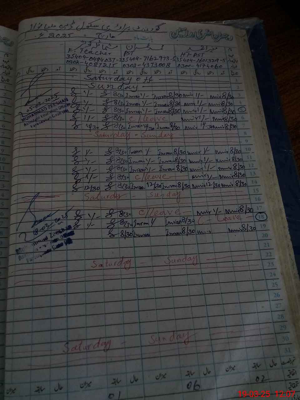 | Name: MU**** AH**** Designation: (School Headmaster's/Headmistress's) PST Phone/Cell Number: 03**** |