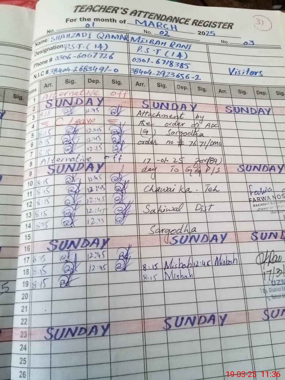 | Name: SH**** QA**** Designation: (School Headmaster's/Headmistress's) PST Phone/Cell Number: 03**** |