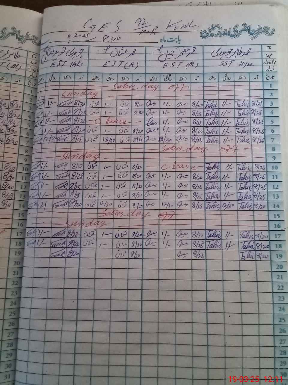 | 36**** | Wa**** Ab**** Kh**** | EST | Regular | 0 | 0 | 0 | 0 | 0 | 0 | 0 | 0 | 0 | Exam Duty |