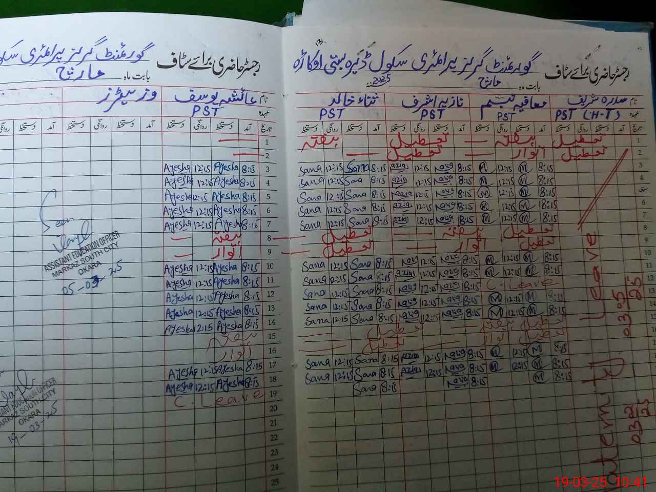 | District: OKARA | Tehsil: OKARA | Markaz: SOUTH CITY - FEMALE | Level: Primary | |