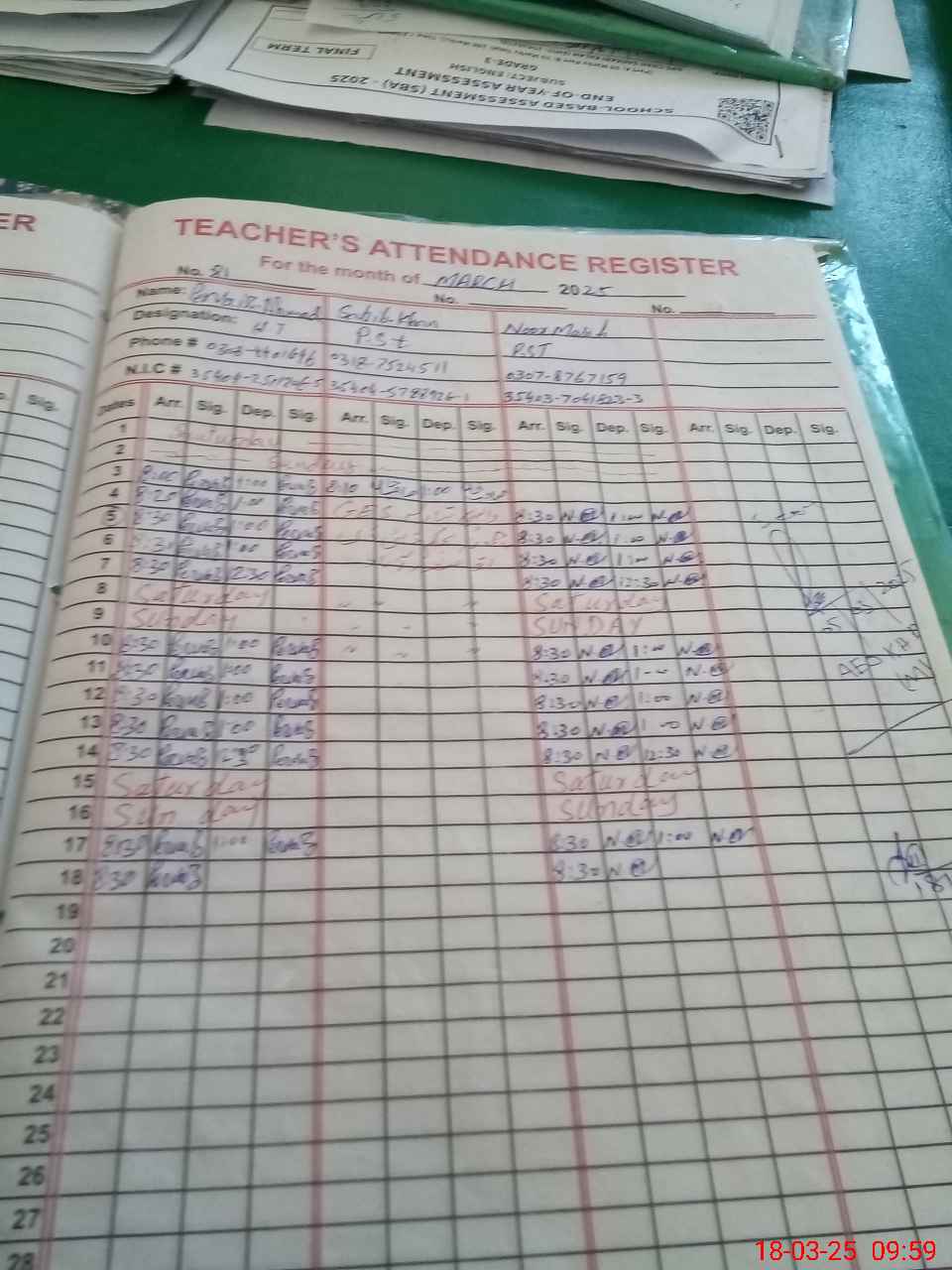 | Name: MAS**** Designation: (School Headmaster's/Headmistress's) PST Phone/Cell Number: 03**** |