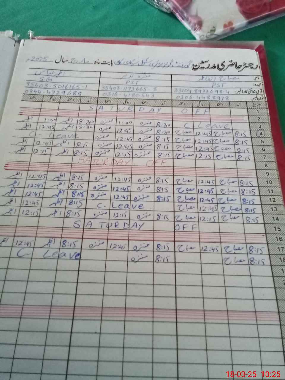 | Leave | Duty | Absent | Maternity | Medical | Ex- Pak |