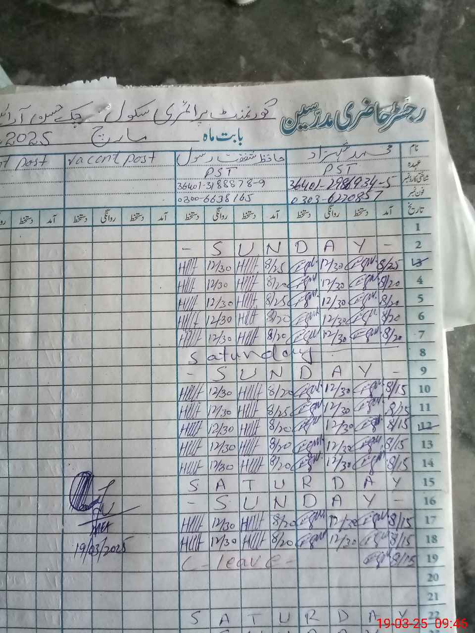 | Name: MU**** SH**** Designation: (School Headmaster's/Headmistress's) PST Phone/Cell Number: 03**** |