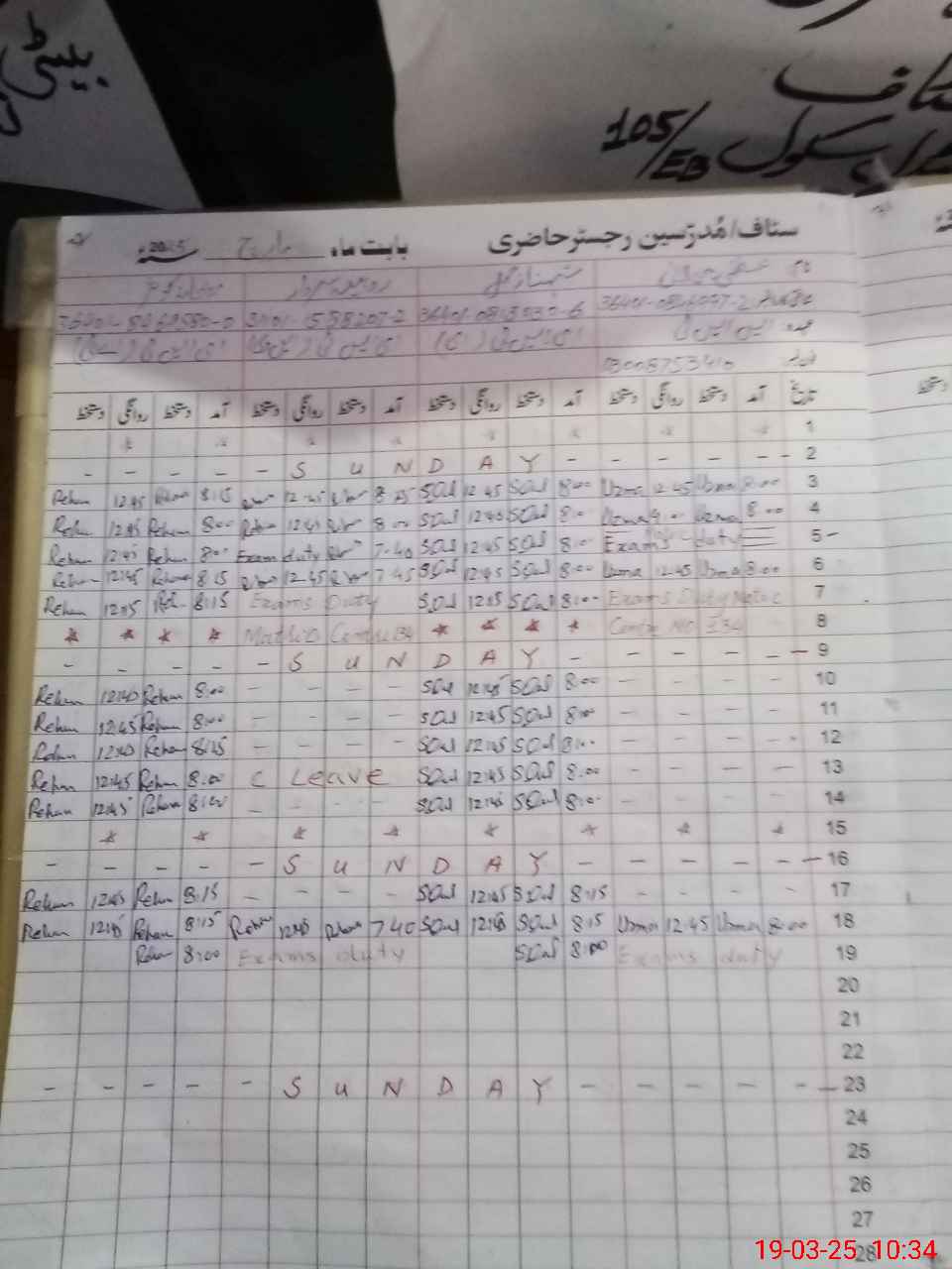 | 36**** | Uz**** Je**** | Regular | 0 | 15 | 0 | 0 | 0 | 0 | 0 | 0 | 0 | Exam Duty | |
