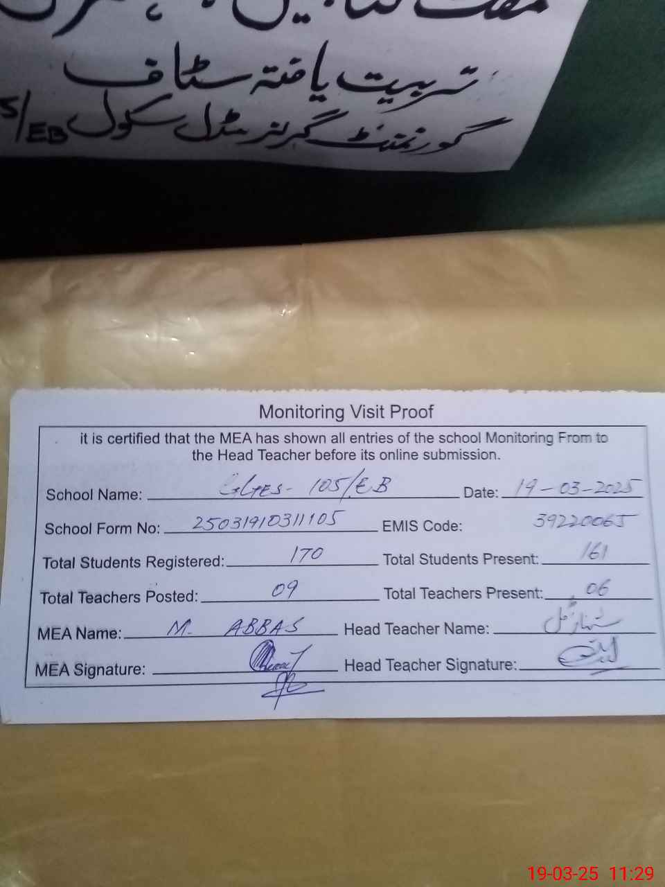 | EMIS Code: 39220065 | Name of School: GGES 105-EB | |||