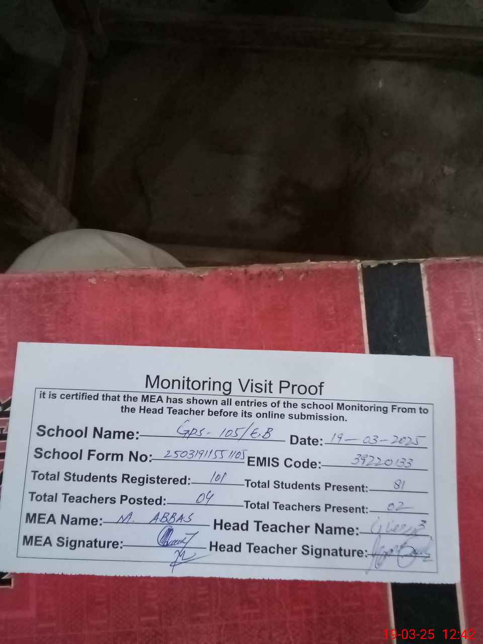 | EMIS Code: 39220133 | Name of School: GPS 105 EB ARIFWALA | |||