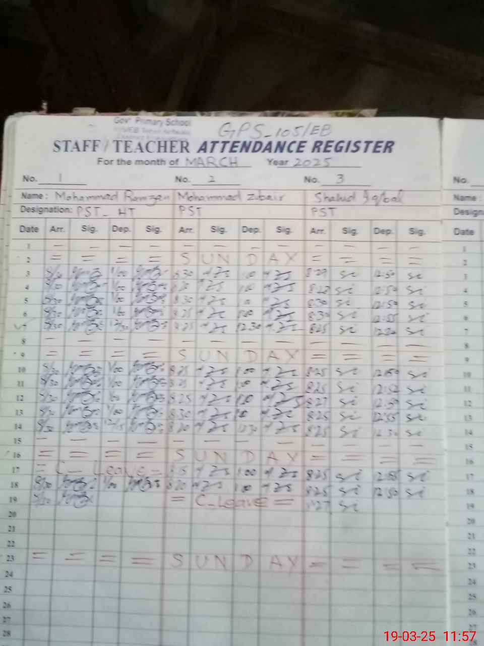 | Name: MU**** RA**** Designation: (School Headmaster's/Headmistress's) PST Phone/Cell Number: 03**** |