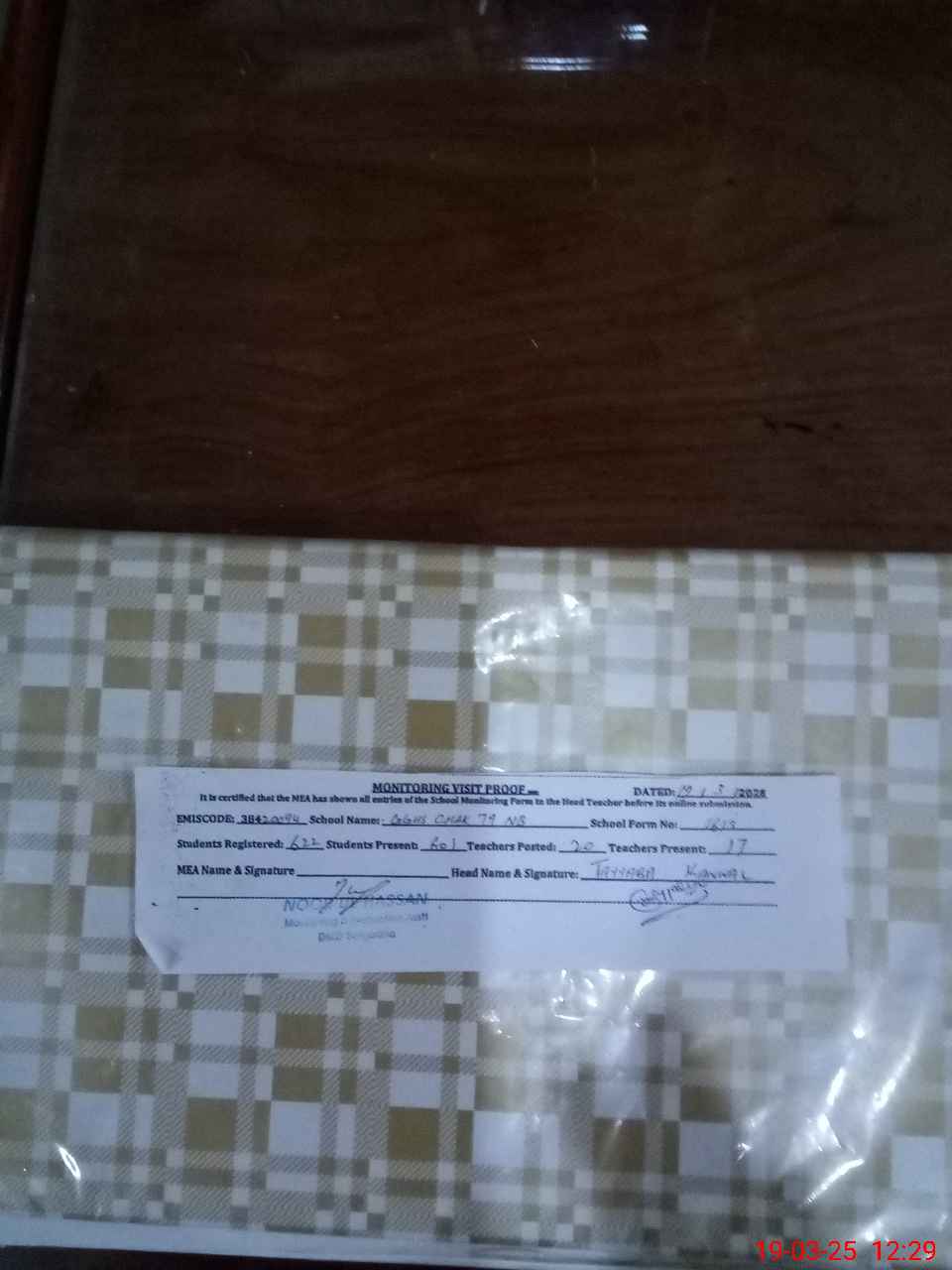 | Attendance Register | Head Teacher | MEA with School | Visit Proof |