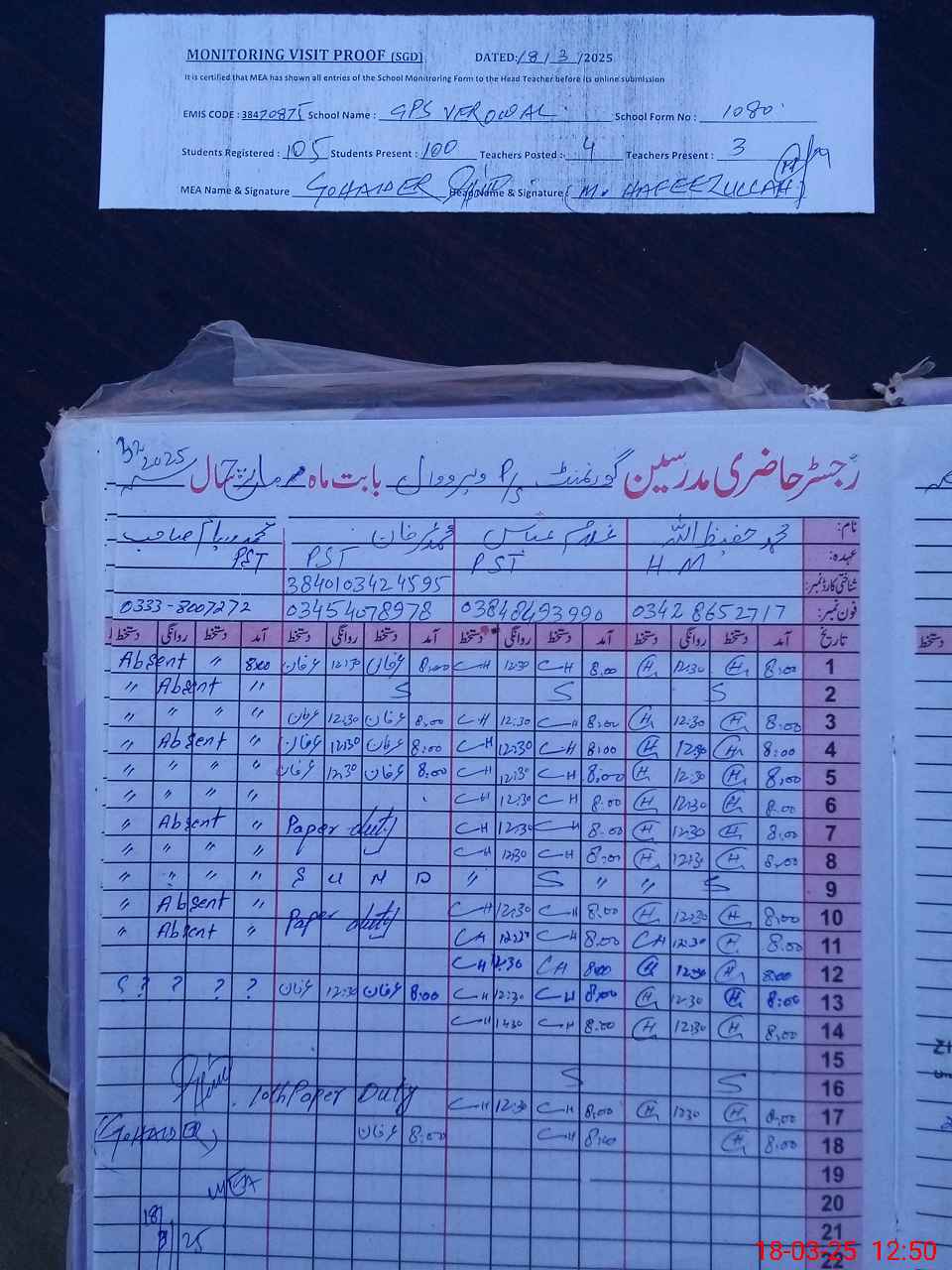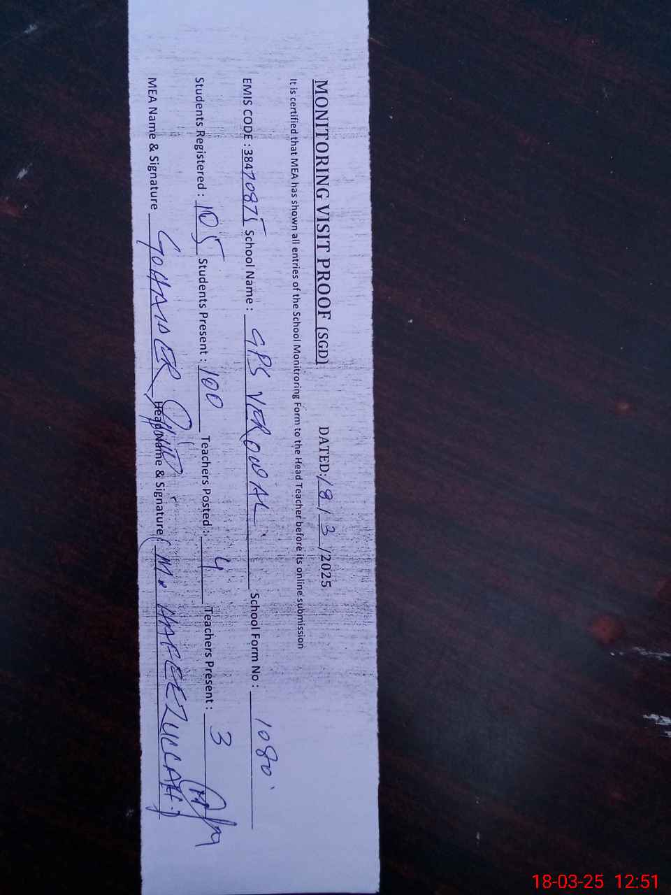 | EMIS Code: 38470875 | Name of School: GPS VEROWAL | |||