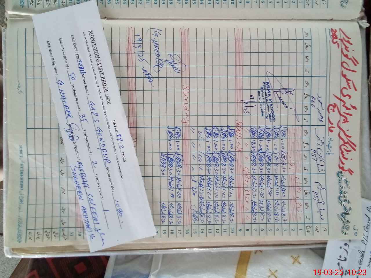 | Remarks (Use Separate Page if Required): FTF AND NSB RECORD NOT AVAILABLE BOGUS ROZNAMCHA PREPAIRED HEAD TEACHER IS ABSENT BUT HER ATTENDENCE WAS MARK AS PRESENT SO IT IS BOGUS ATTENDENCE | |||||