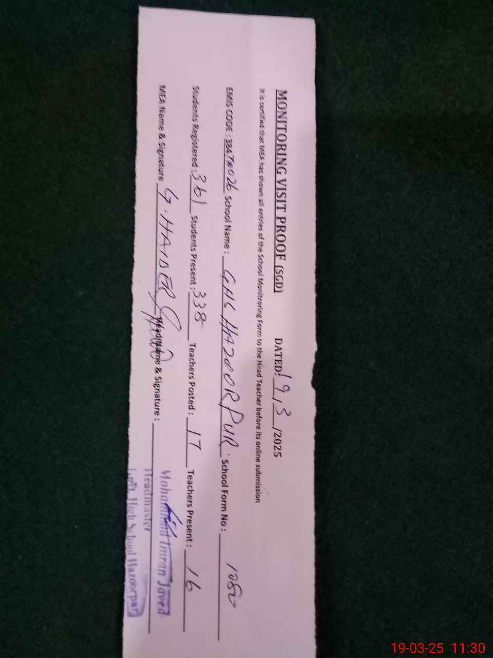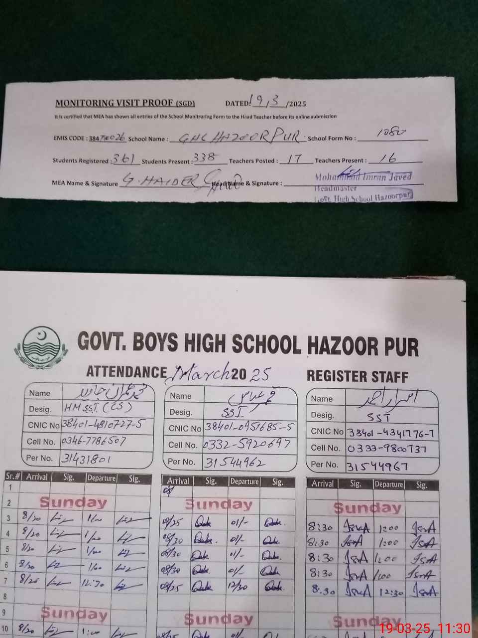 | EMIS Code: 38470026 | Name of School: GHS HAZOOR PUR | |||