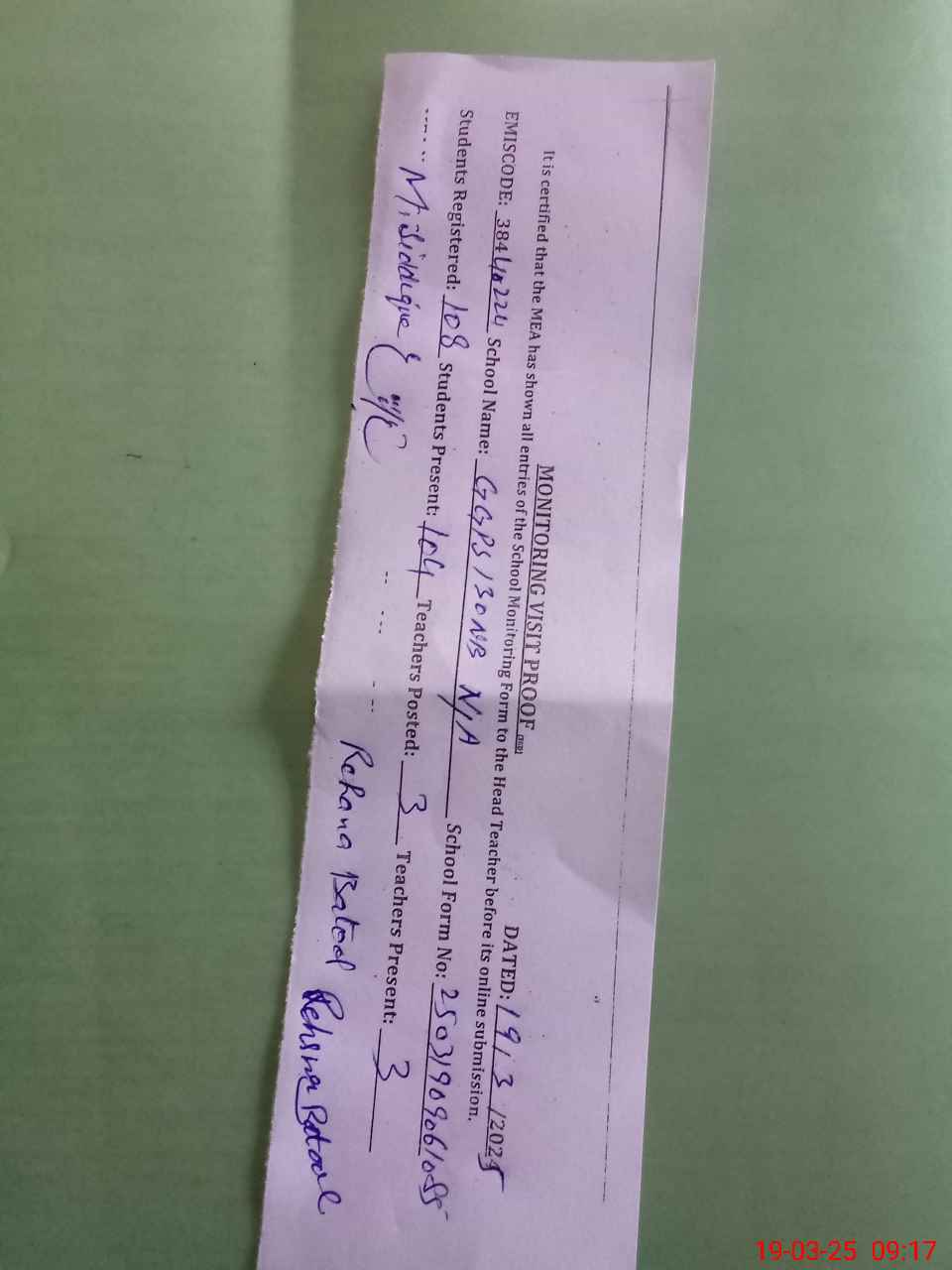| Certified that this School was Inspected by the Undersigned MEA/DMO Today and the Information Stated Above is as Per Record. | |||||