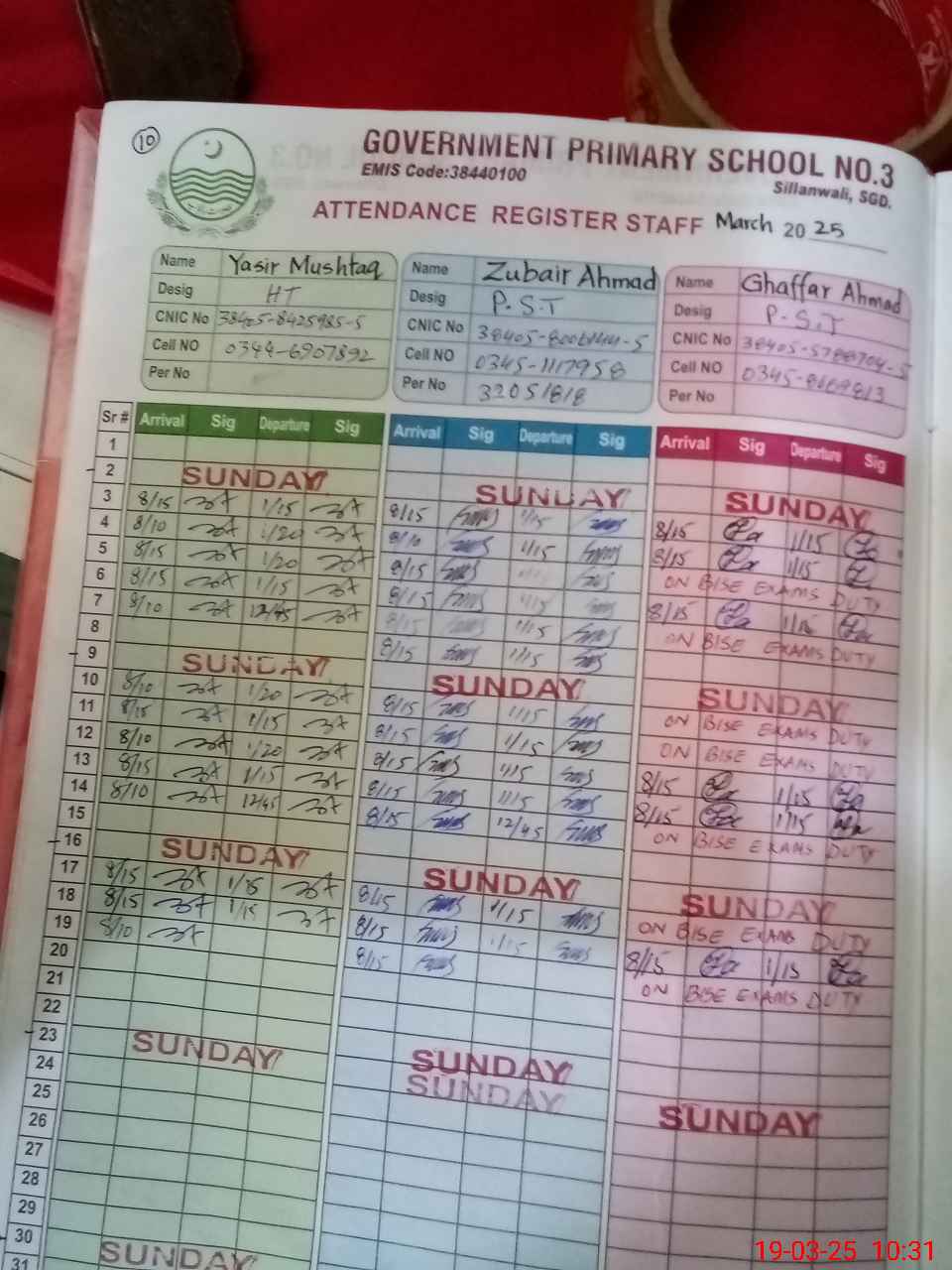 | EMIS Code: 38440100 | Name of School: GPS NO. 3 NOON COLONY SILLANWALI | |||