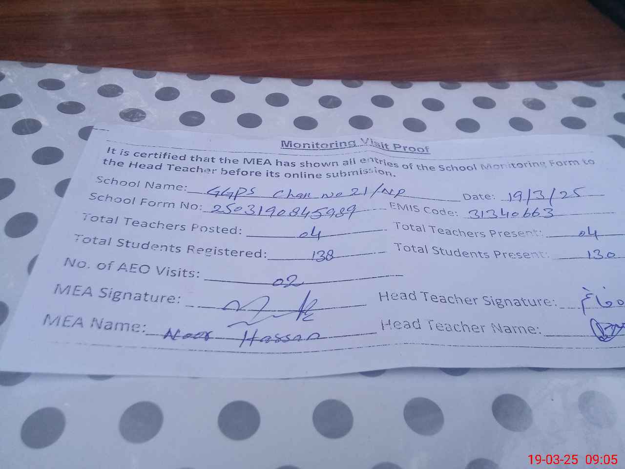 | EMIS Code: 31340663 | Name of School: GGPS 21/NP QADEEM GHULAM RASOOL | |||
