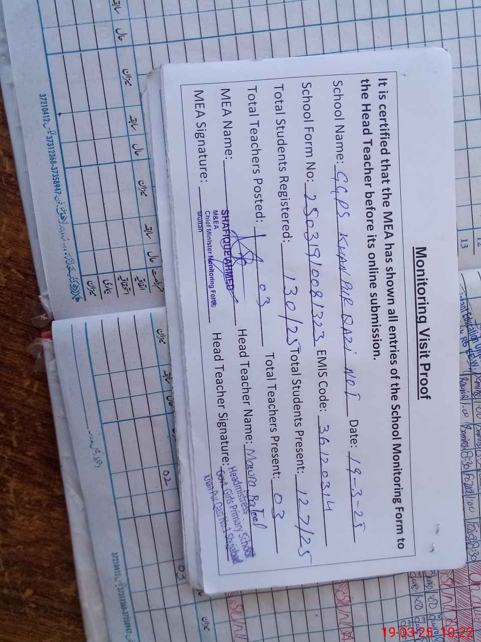 | EMIS Code: 36120314 | Name of School: GGPS KHAN PUR QAZI NO.1 SHUJABAD | |||