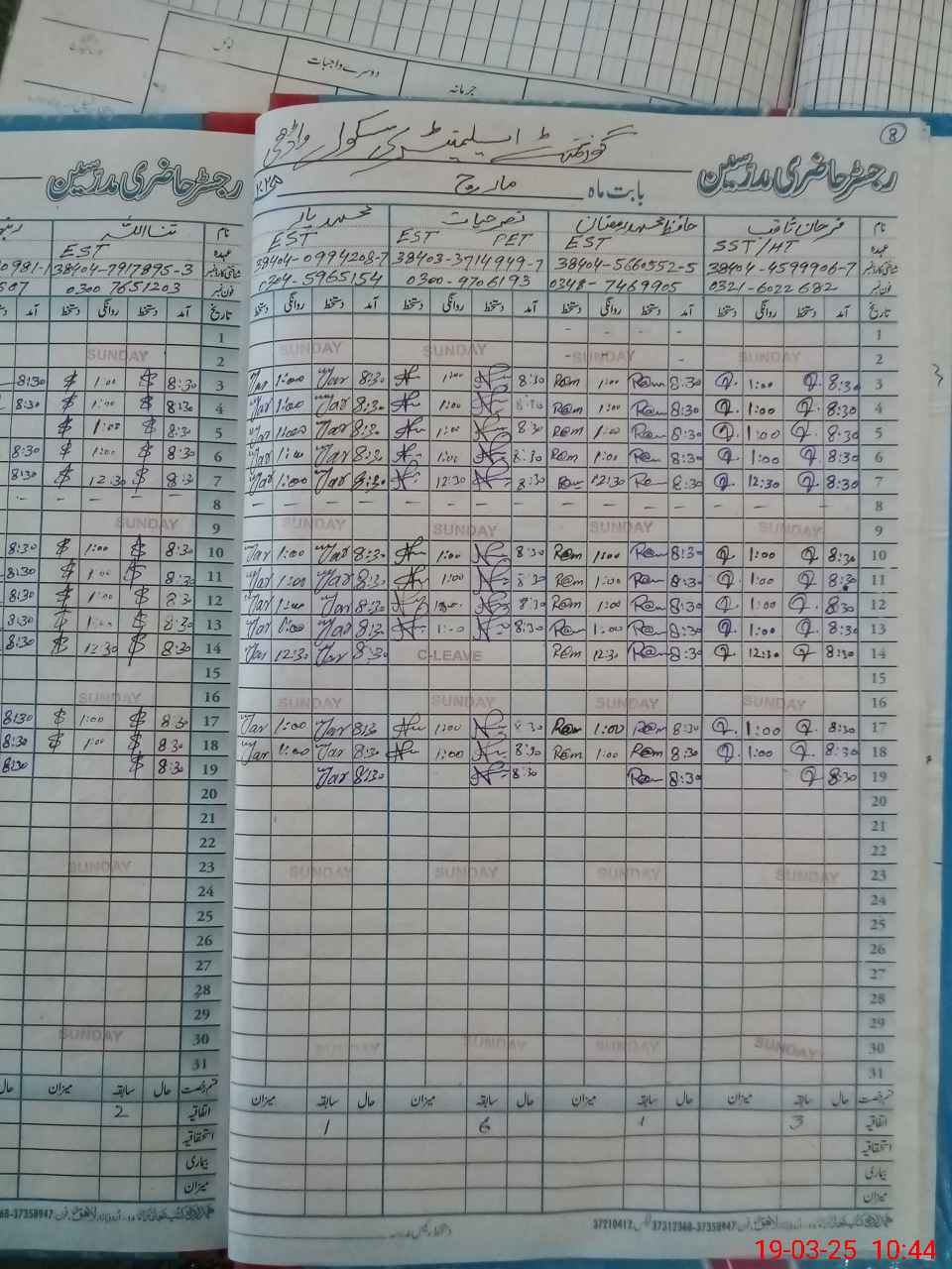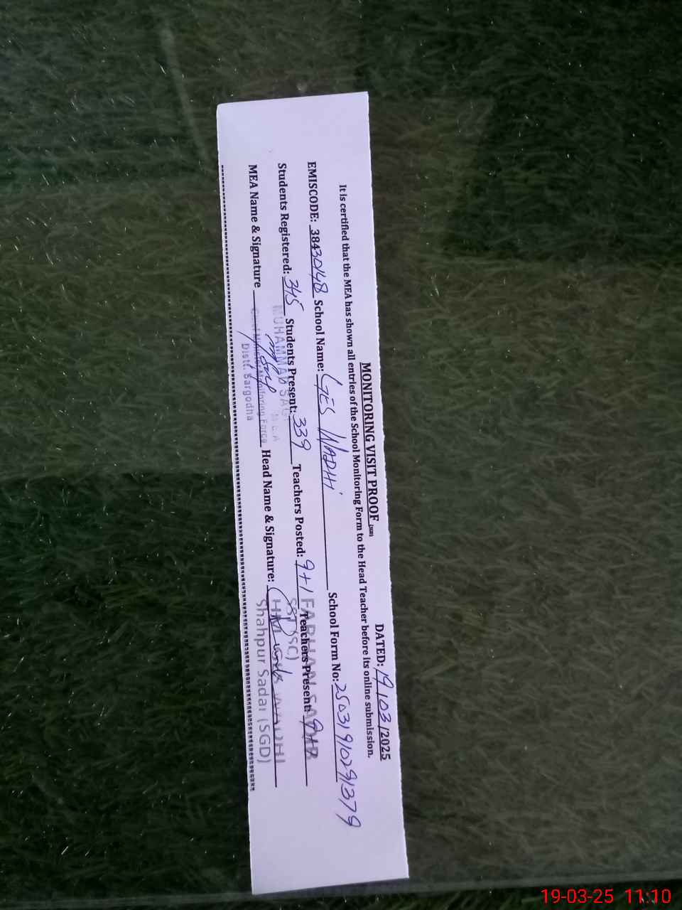 | Name: MU**** FA**** AS**** Designation: (School Headmaster's/Headmistress's) EST I/c Phone/Cell Number: 03**** |