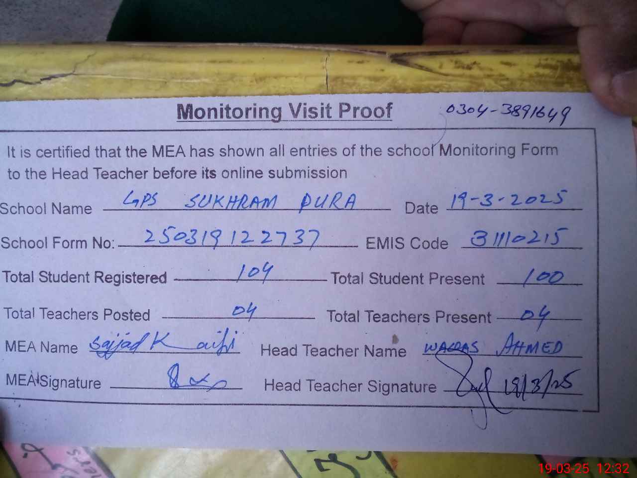 | EMIS Code: 31110215 | Name of School: GPS SUKHRAM PURA | |||