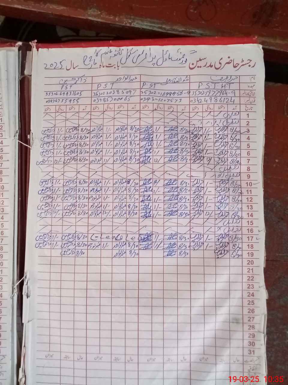 | Name: Mu**** La**** Designation: (School Headmaster's/Headmistress's) HM Phone/Cell Number: 03**** |
