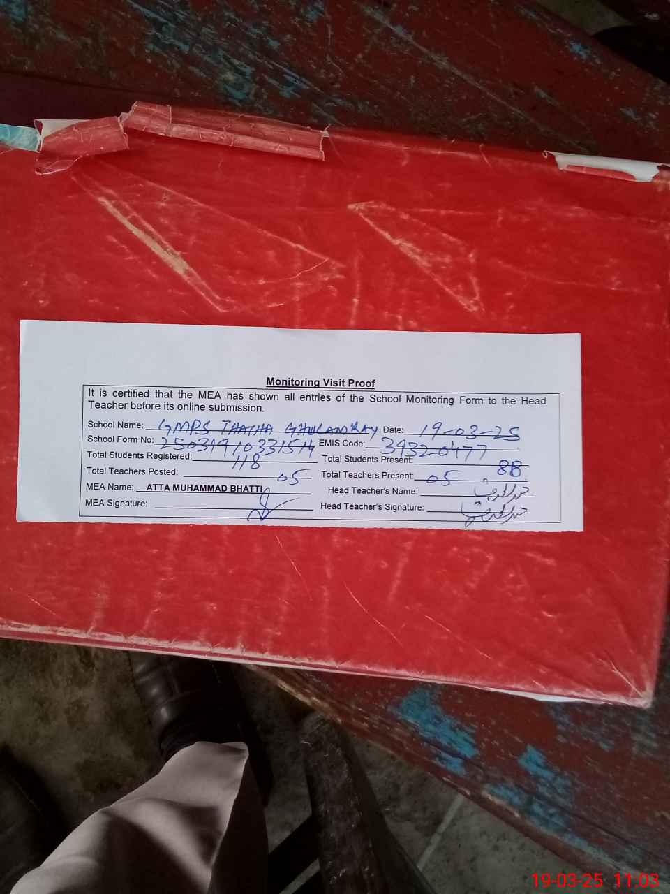 | EMIS Code: 39320477 | Name of School: GMPS THATHA GHULAM KAY | |||