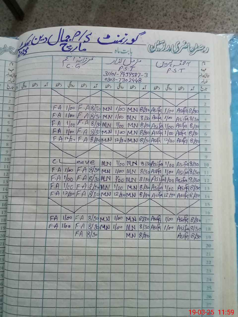 | Name: Mu**** Na**** Designation: (School Headmaster's/Headmistress's) PST Phone/Cell Number: 03**** |