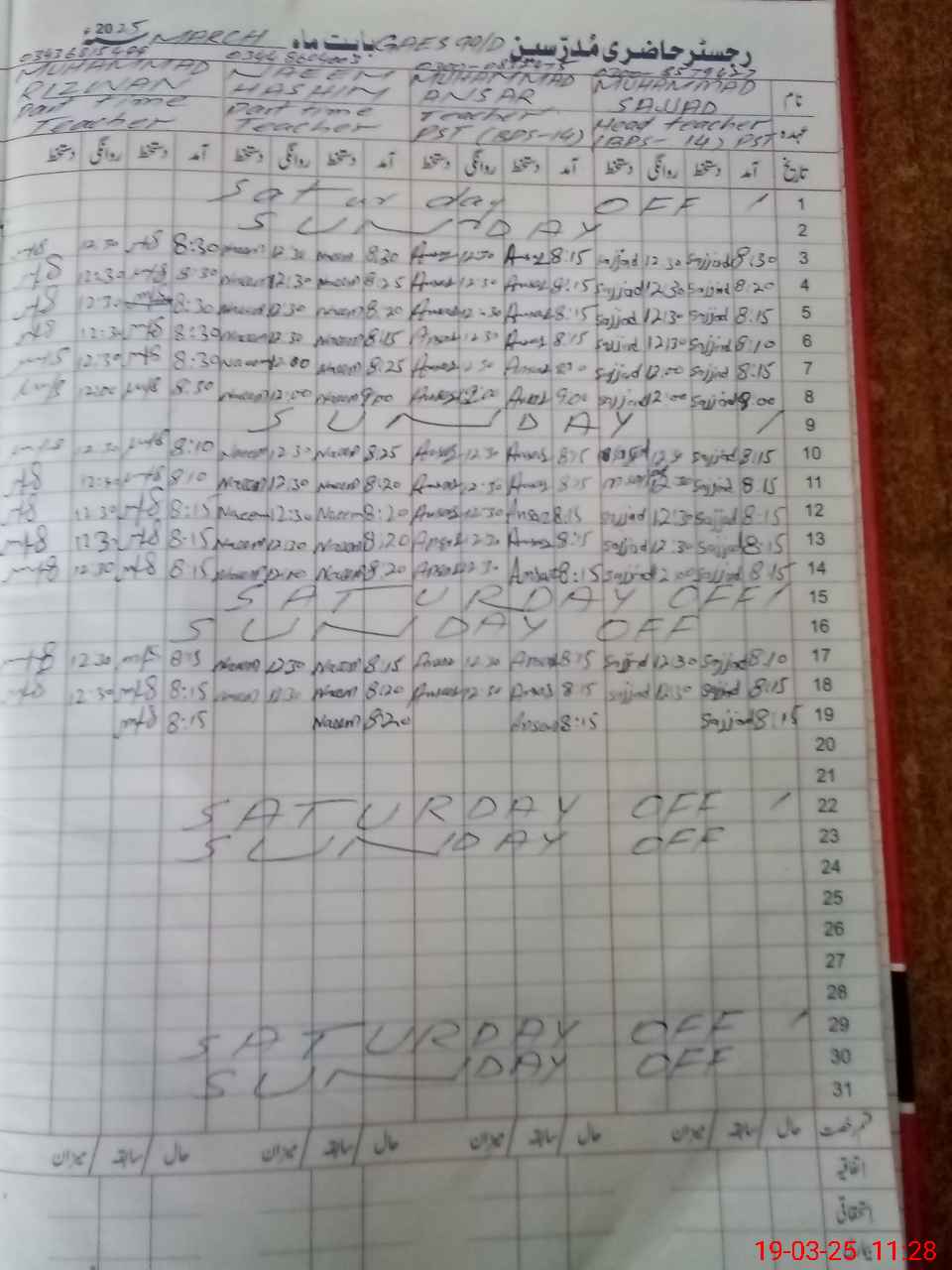 | Name: MU**** SA**** Designation: (School Headmaster's/Headmistress's) PST Phone/Cell Number: 03**** |
