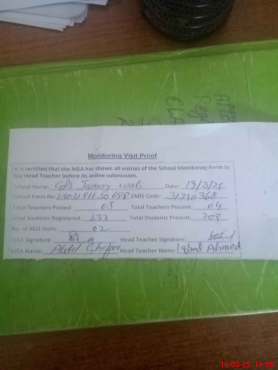 | EMIS Code: 31330368 | Name of School: GPS JAMAY WALI | |||