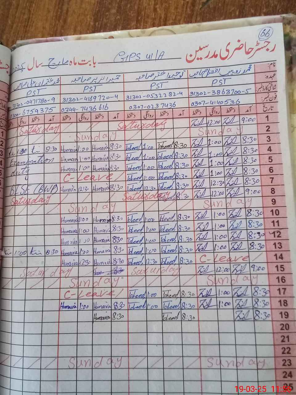 | 31**** | Mu**** Us**** Al**** | PST | Regular | 2 | 0 | 0 | 0 | 0 | 0 | 0 | 0 | 2 | Exam Duty |