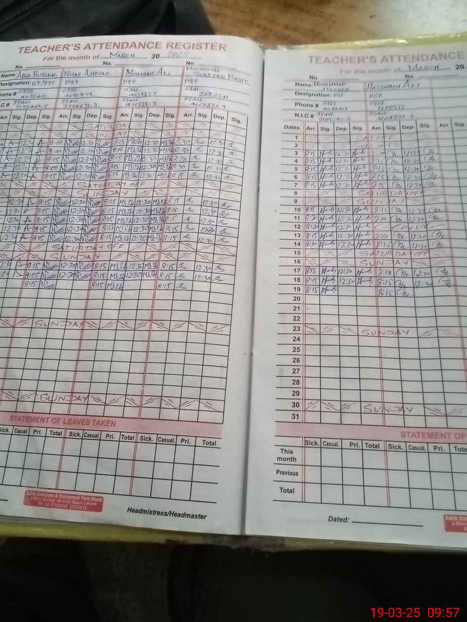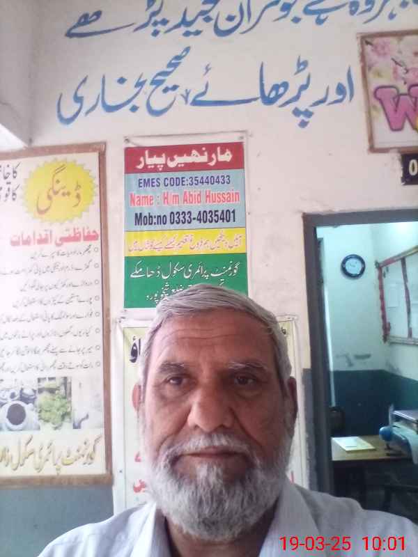 | Name: Ab**** Hu**** Designation: (School Headmaster's/Headmistress's) PTC/JV Phone/Cell Number: 03**** |